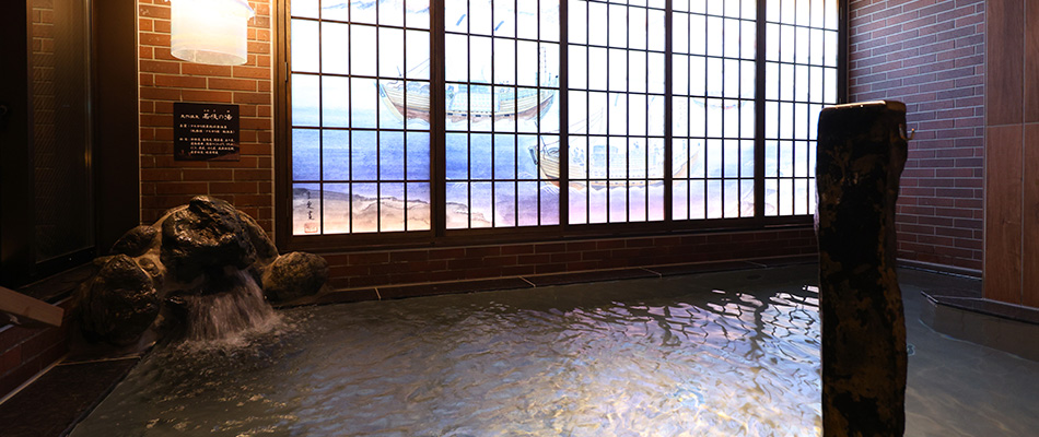 2Fの男女別天然温泉大浴場「若狭の湯」。