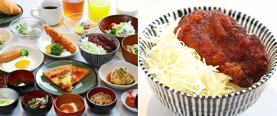 - 朝食は、全国のドーミーインチェーン共通の和洋バイキング、小鉢横丁と出来立ての卵料理に加え、