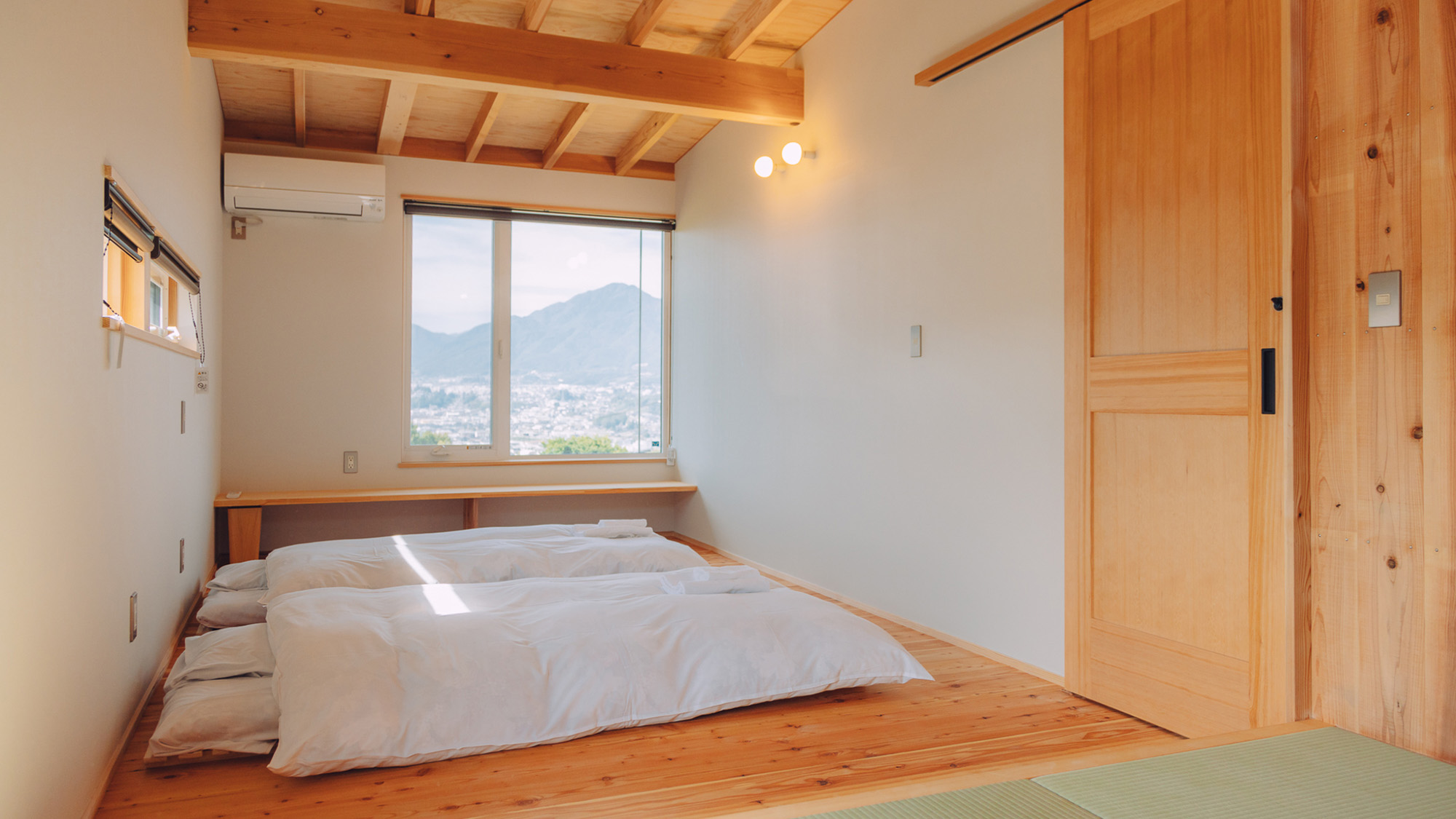 農場でとれた野菜・果物を味わったり、季節ごとの農業体験ができる宿。眼下には飯田市の街並みが広がります