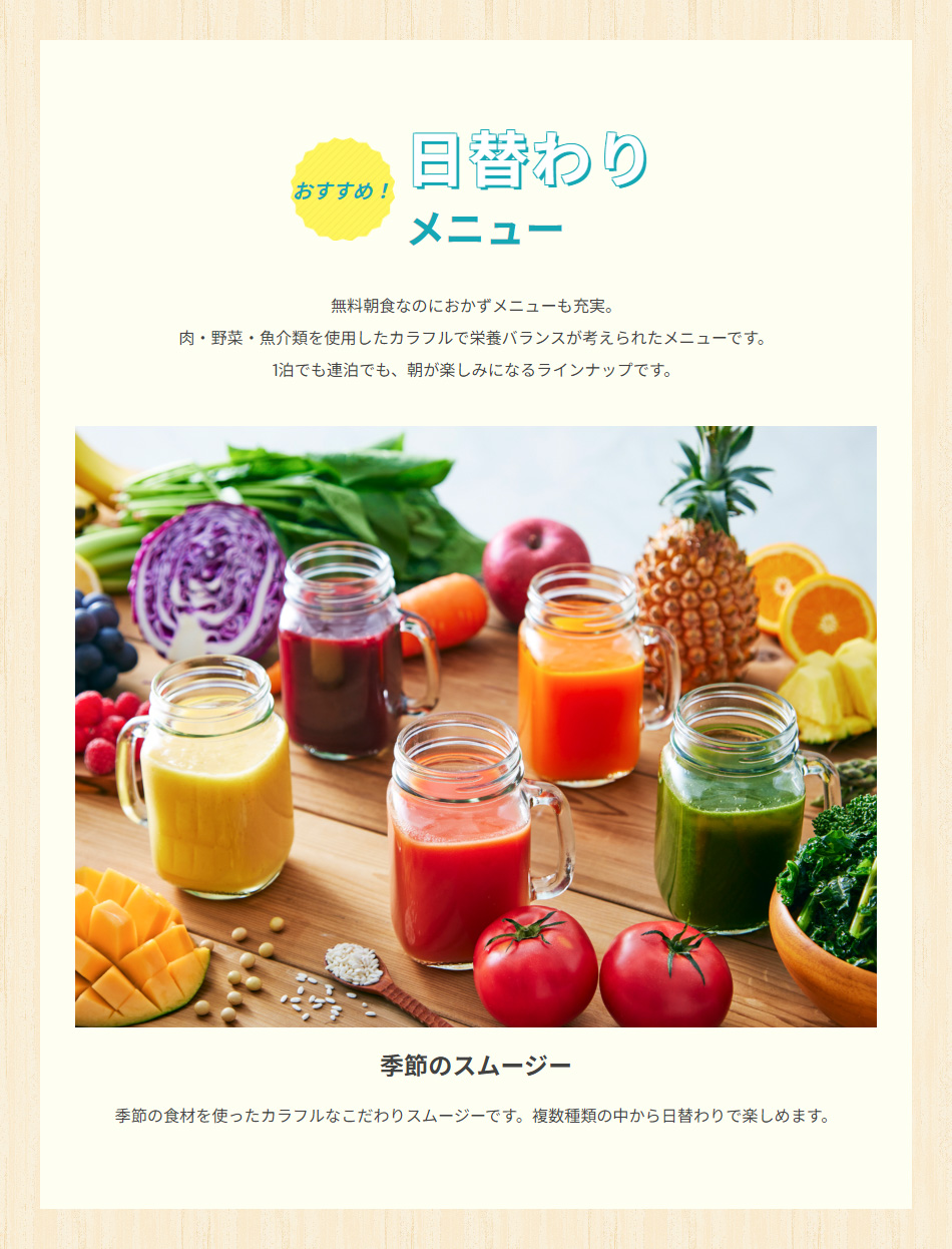 一日のはじまりに彩りを添える無料朝食