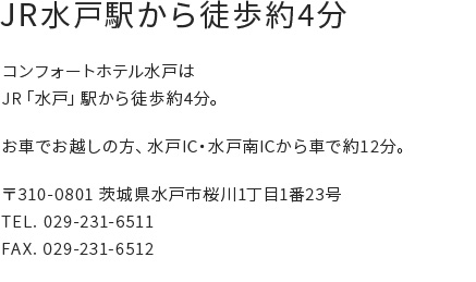 JR水戸駅から徒歩約4分、常磐自動車道水戸IC・北関東自動車道水戸南ICから車で約12分の場所に位置し、