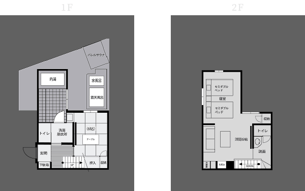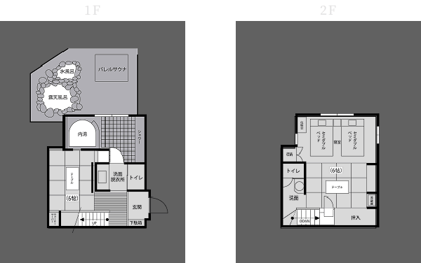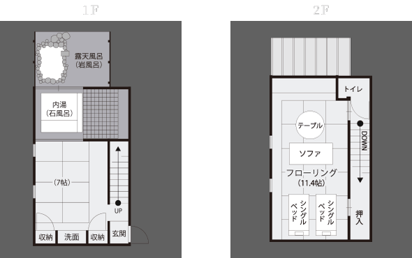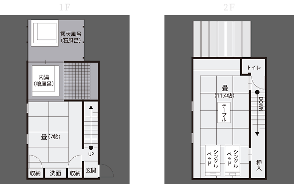 湯と整いを存分にお楽しみいただける離れ客室です。