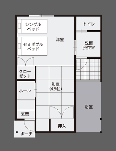 - セミダブルベッド×1
