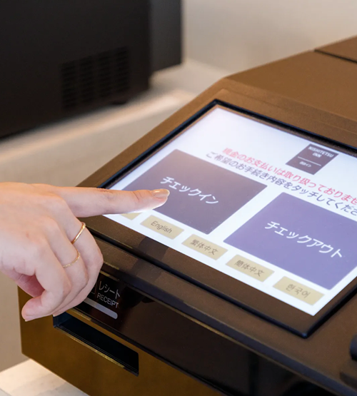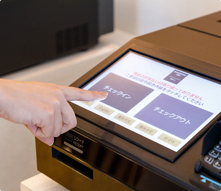 自動チェックイン機を4台ご用意しております。簡単タッチパネルでスピーディーにいつでもチェックイン・チェックアウトが可能です!