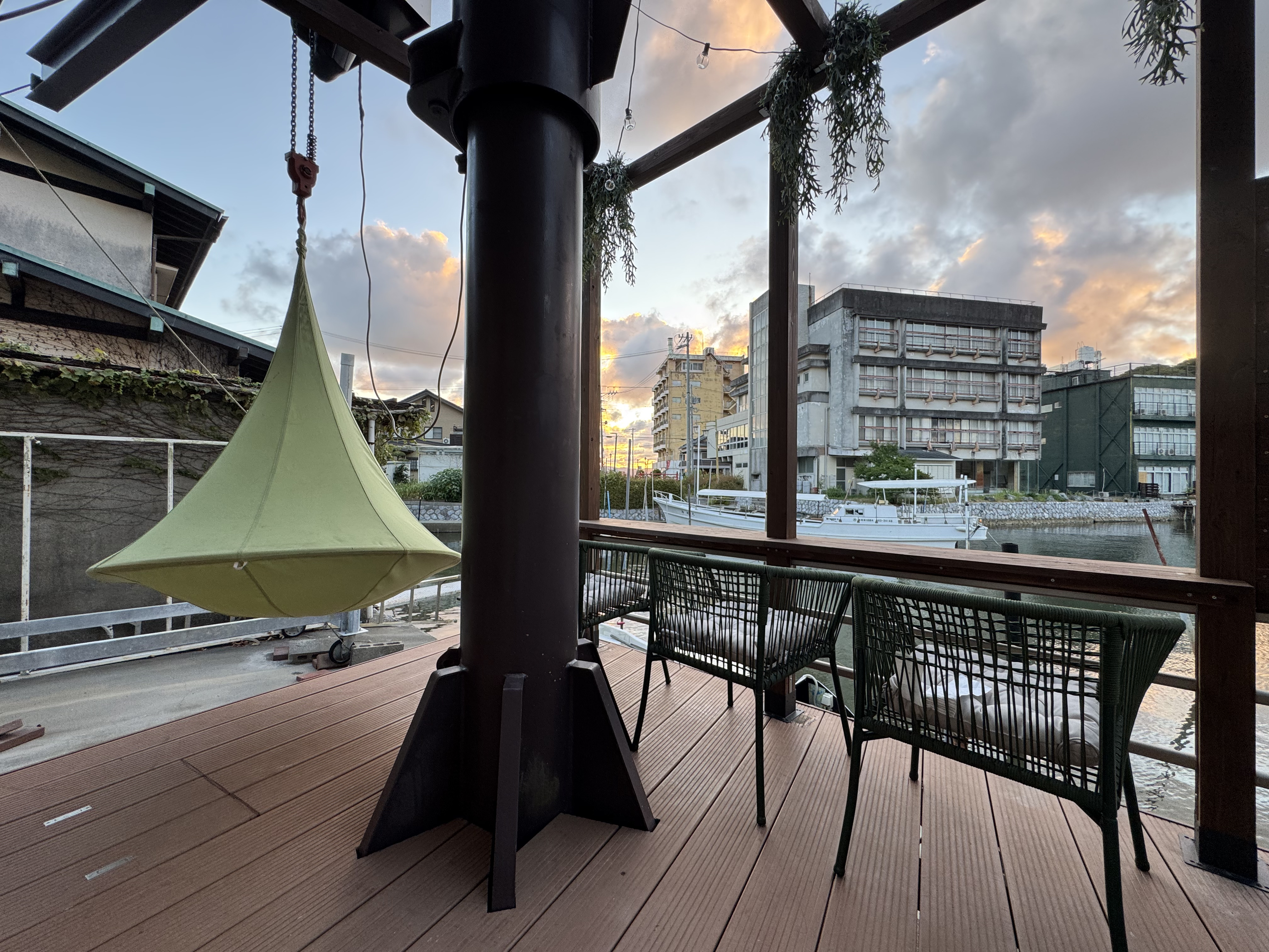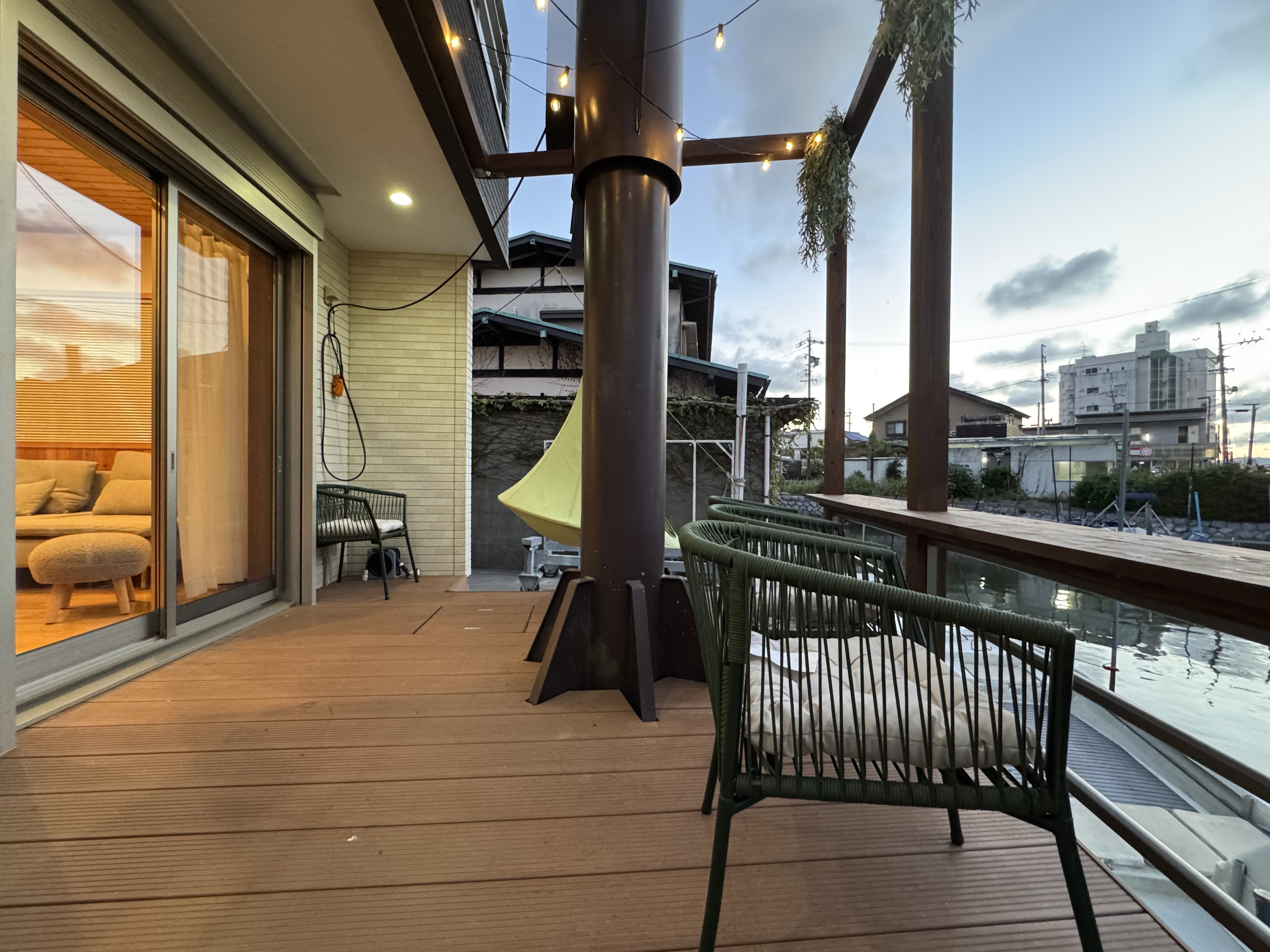 - 湖沿いのテラスに五右衛門風呂があります。水着等の着衣着用でご利用ください。