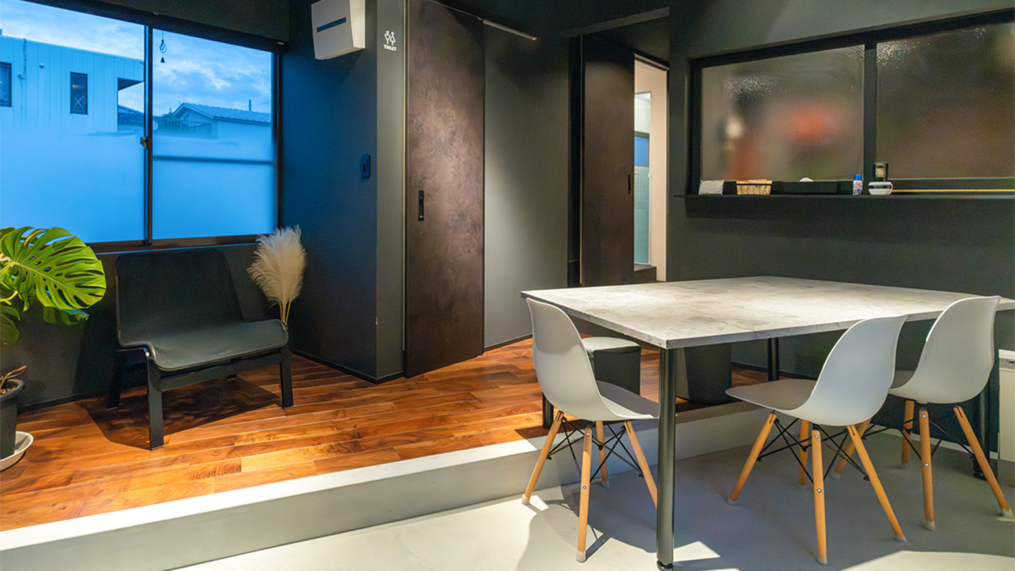 阿波橘駅まで徒歩約6分の一棟貸し!黒基調のモダンデザインを取り入れたシックで落ち着いた空間を満喫