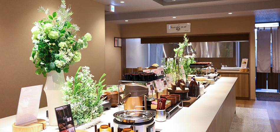 朝食は、全国のドーミーインチェーン共通の和洋バイキングと小鉢横丁に加え、
