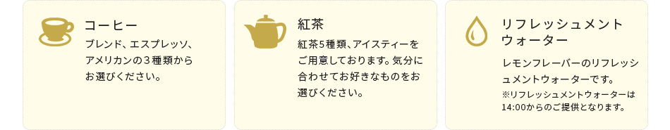 アレルギーが気になる場合は、フロントへお声掛けください。