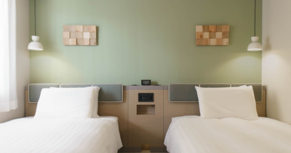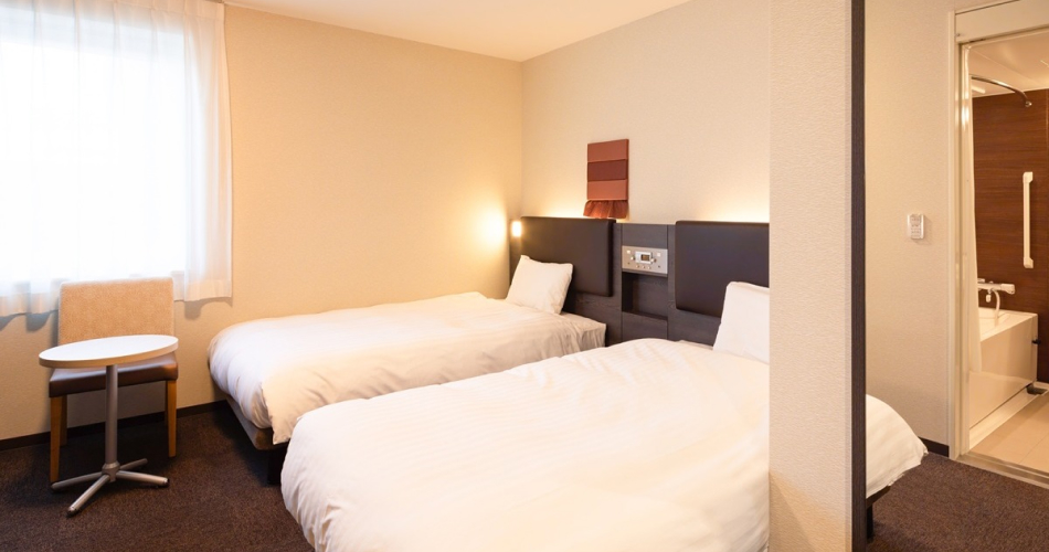 26㎡の広さに幅120cmのベッドを2台、さらにソファベッドを備えた使い勝手のよいツインルーム。バストイレ別のため、ご家族やグループでもゆっくり準備ができ、快適に過ごせます。オリジナル快眠枕「チョイス ピロー」やSerta(サータ)と共同開発した「チョイスオリジナル7ZONEマットレス」など、旅の合間にほっとくつろげる設備が充実。全室禁煙・Wi‑Fi対応で、快適な滞在をサポートします。小学生以下のお子様は添い寝無料で安心です。