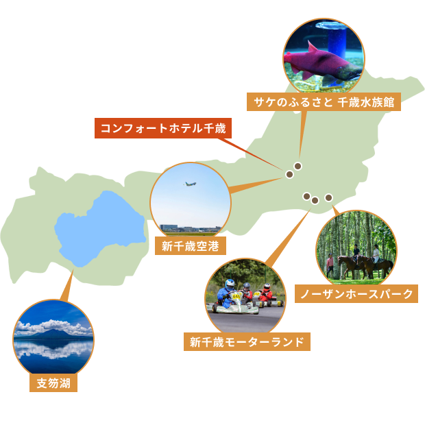 周辺には、全国屈指の透明度を誇る「支笏湖」をはじめ、北海道らしい魅力あふれる観光スポットが点在しています。