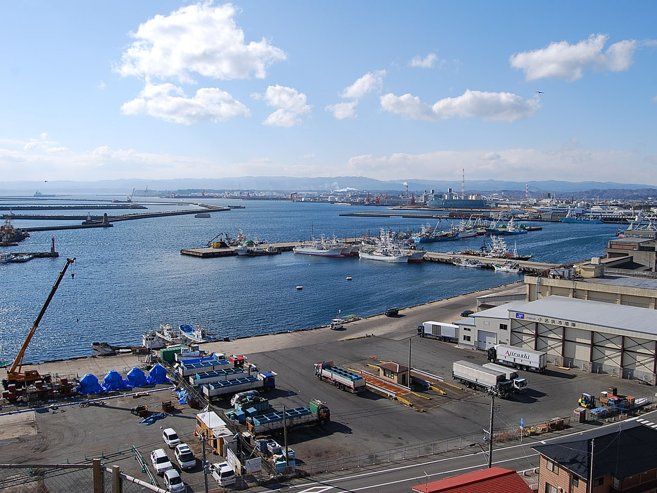 小名浜港と太平洋が一望出来る高台に立地する旅館 天地閣。料理は魚介類を中心とした懐石料理です。