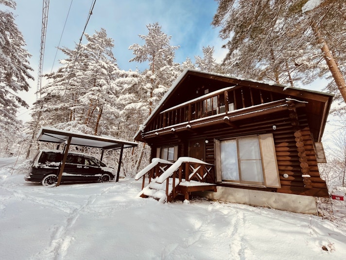 白馬47まで車で2分。森に佇む100平米のラグジュアリーログキャビン。