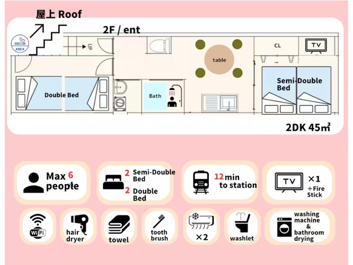 2階フロア貸切!2DK・45平米の広々空間で大阪観光を満喫。
