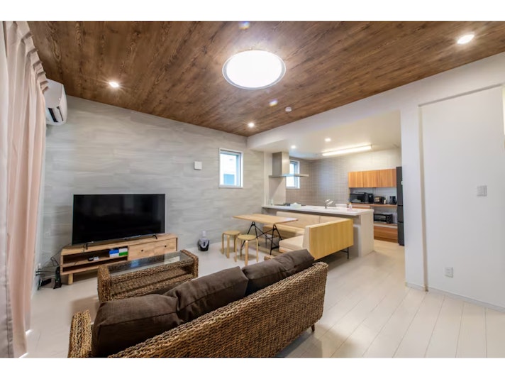 伊良部大橋を望むルーフトップ付き新築一戸建て。BBQ、長期滞在可。