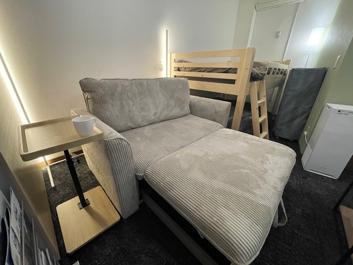 お部屋 43型液晶テレビ(ネット動画視聴可)、冷蔵庫、電子レンジ