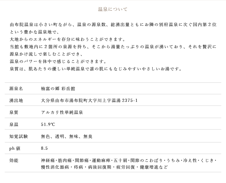 由布院温泉 柚富の郷 彩岳館 ◆温泉