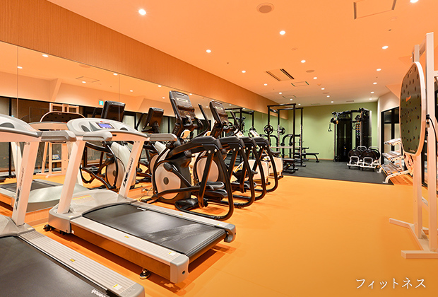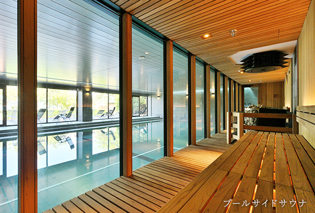 プールサイドのサウナや外気浴テラス、フィットネスを備えたリゾートスパにも男女別の温泉エリアが。