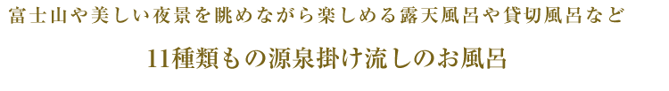 平成元年のリニューアルオープン以来、良質の温泉をたっぷりと楽しんでいただきたく、だんだんと誕生してきたいろいろなお風呂が、今ではなんと11種類も・・・