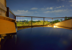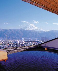 富士山や甲府市を一望しながら湯浴みを楽しめる絶景の露天風呂。