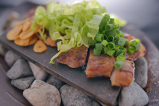 澄んだ水と、おいしい空気、美しい緑に囲まれた環境で、なんとも贅沢に、ワインを搾った時にできるブドウ粕を交配した自然飼料で育てられたこの特別な牛肉は絶品です。