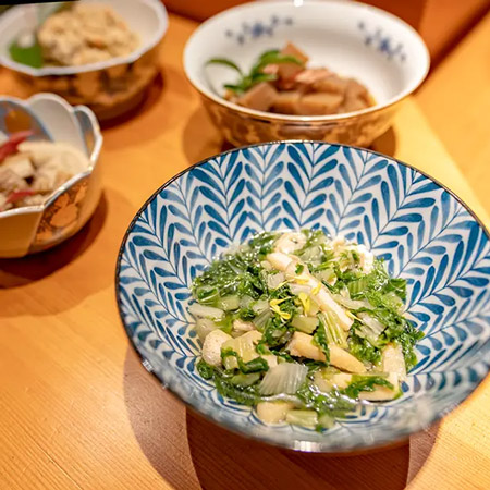 料理人のだし巻きはもちろん、自家製みその味噌汁やKISSUIEN極み出汁の煮物、数種類のおばんざいやサラダ、職人が本気でつくった「ごはんのおとも」など多数。ちょっと、作りすぎてしまいました?