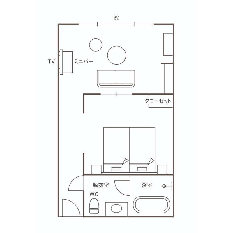| ミニバー: | 【無料】ドリップコーヒー / デカフェ / 紅茶 / 緑茶 / ミネラルウォーター 【有料】ビール / ウィスキー / 赤ワイン / ソフトドリンク / スナック |