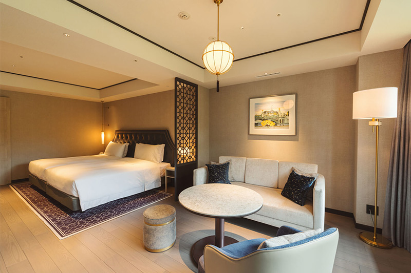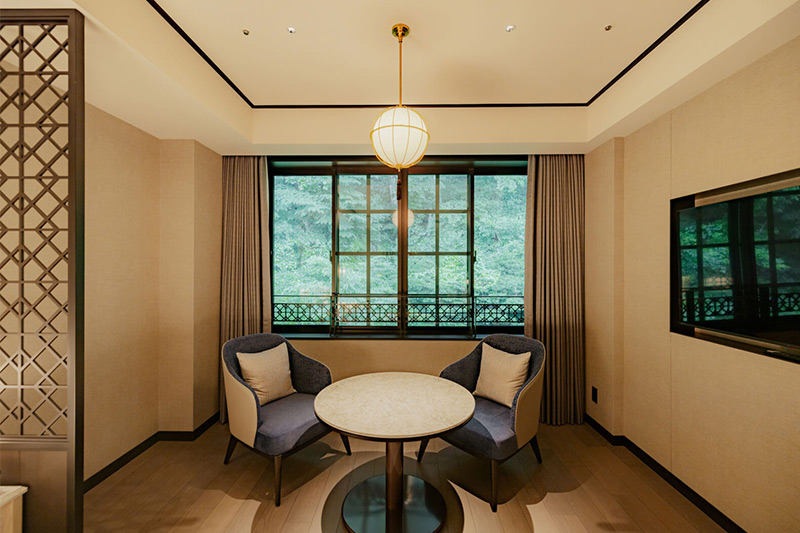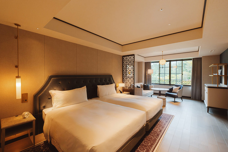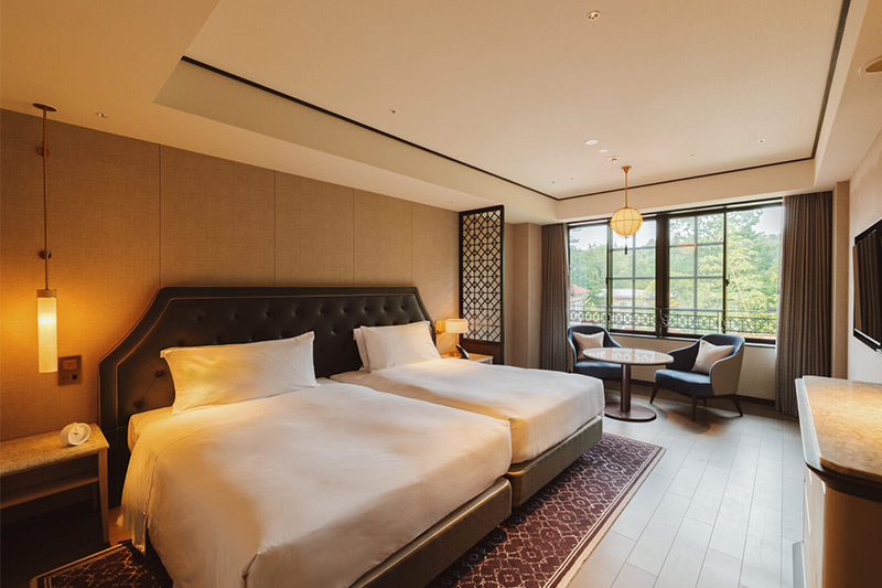 クラシカルな面影を残しながら、現代的なデザインを施した新たな和洋折衷の客室。広々としたお部屋からは美しい四季折々の景色をお楽しみいただけます。