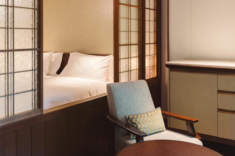 アルプス館のクラシカルなインテリアデザインを継承しつつ、碓氷館の周囲で感じられる四季を取り入れ、木々や花々の息吹を想起させる優しい色合いが調和した客室です。
