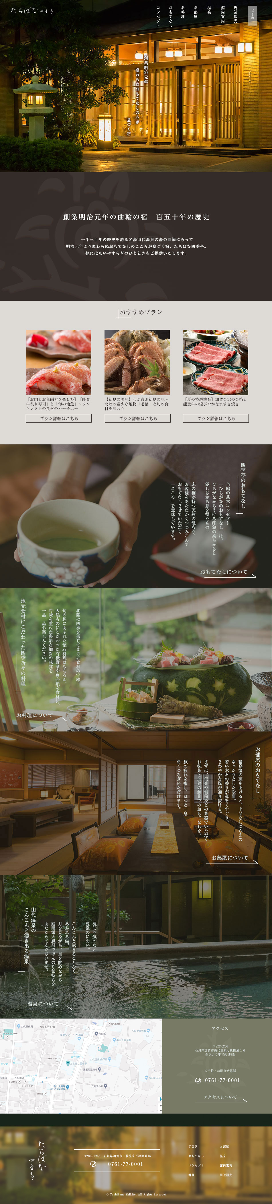 最寄りJR加賀温泉駅 送迎は14時30分から18時 約15分/北陸自動車道・加賀IC 約15分/金沢より車で最短約60分
