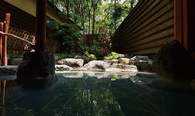 八方温泉は、別名「美人の湯」としても誉れ高い天然温泉。新聞紙上にて「強アルカリ泉全国一」と評価され、肌がすべすべになる湯質に特色があります。
