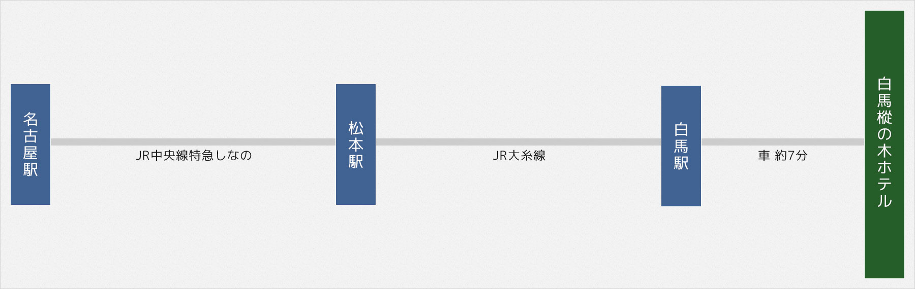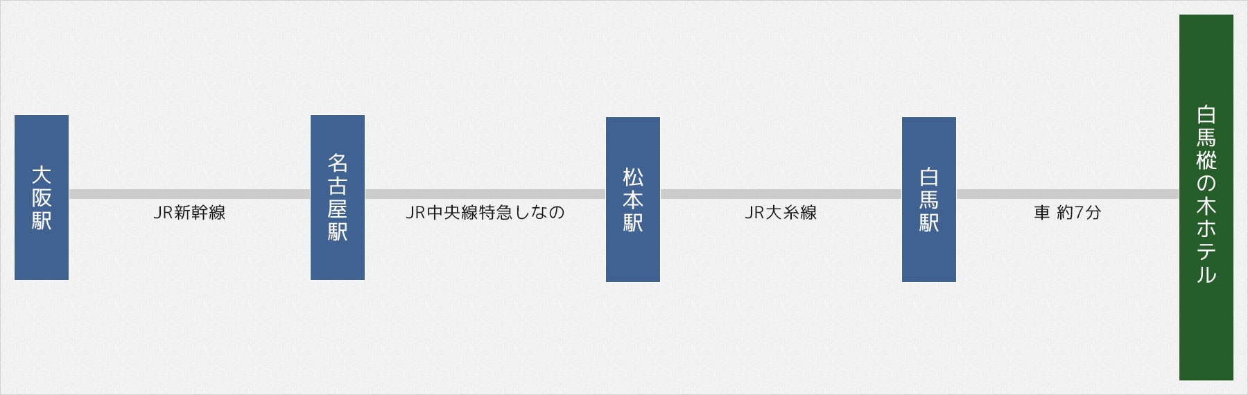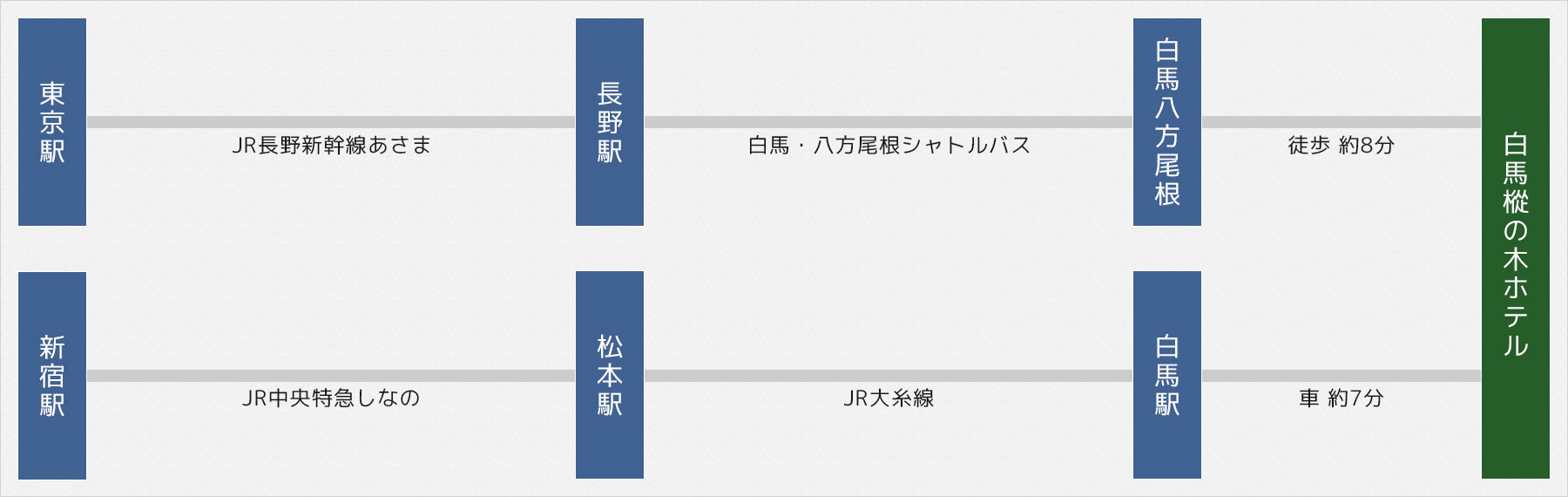 ※最短所要時間(乗り換え時間を除く) ※(白馬駅・八方尾根バスターミナルから白馬樅の木ホテルへはタクシーをご利用くださいませ)
