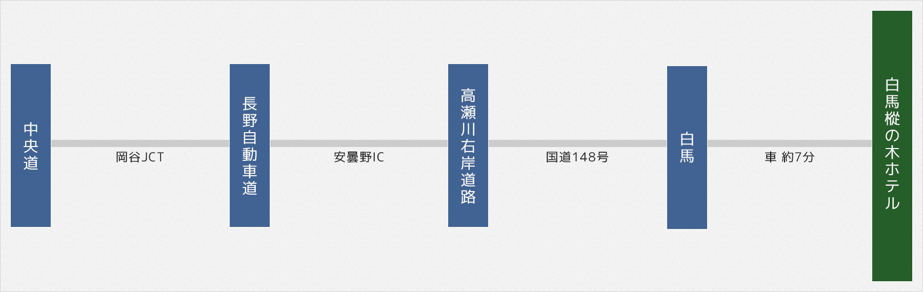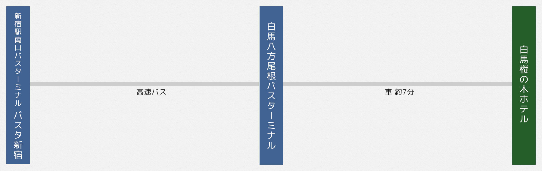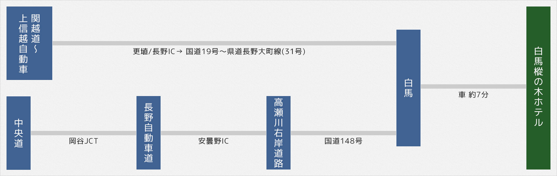 ※最短所要時間(乗り換え時間を除く) ※(白馬駅・八方尾根バスターミナルから白馬樅の木ホテルへはタクシーをご利用くださいませ)