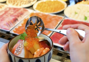 新鮮なお刺身を好きなだけ選んで、オリジナルの海鮮丼を楽しめる。