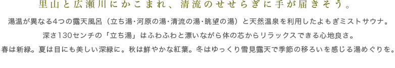 ※広瀬川源流に面しておりますので自然保護のため石鹸等のご利用はご遠慮いただいております。