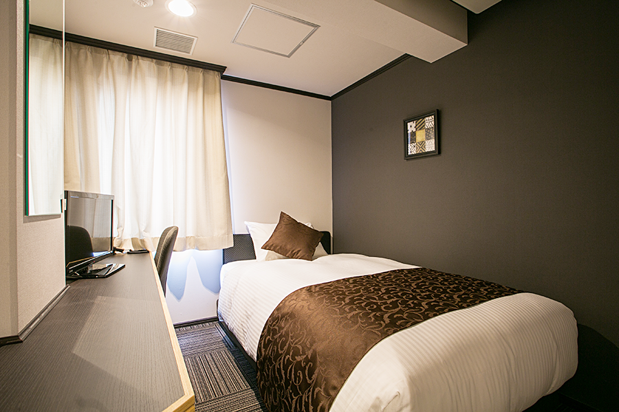 ゆとりのある客室と大きめのベッド。疲れを癒し、ゆっくりとお過ごしください。