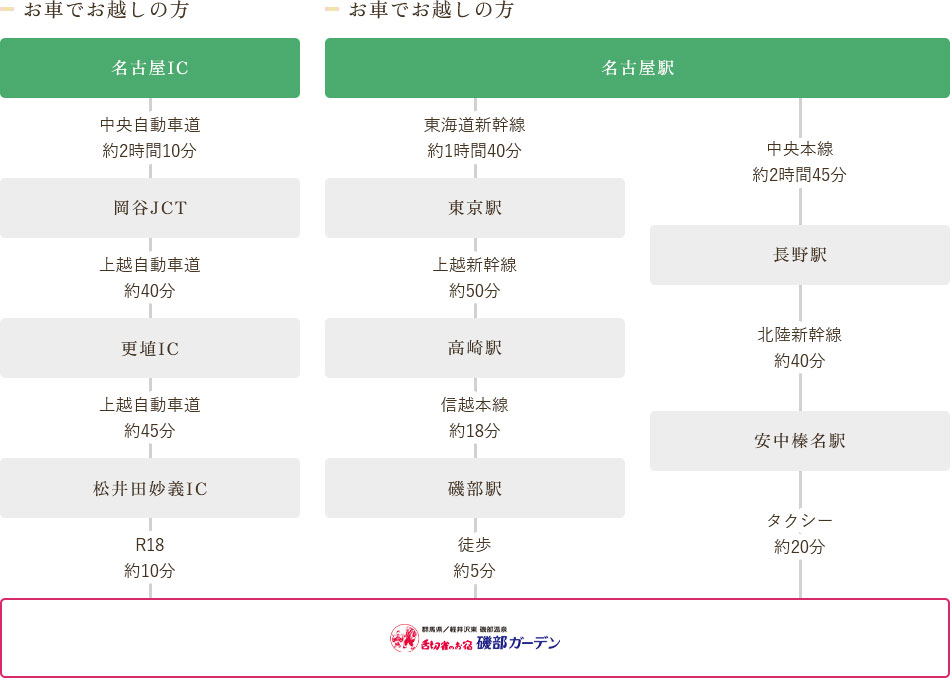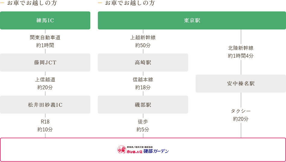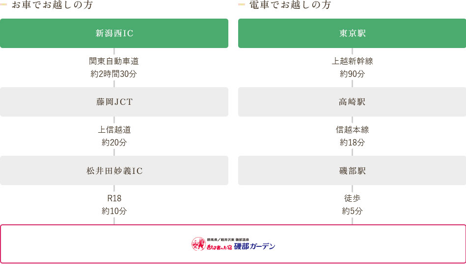 磯部温泉 舌切雀のお宿 ホテル磯部ガーデン アクセス