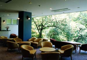 自然の樹木に面して爽やかな光があふれる≪木賀の湯≫