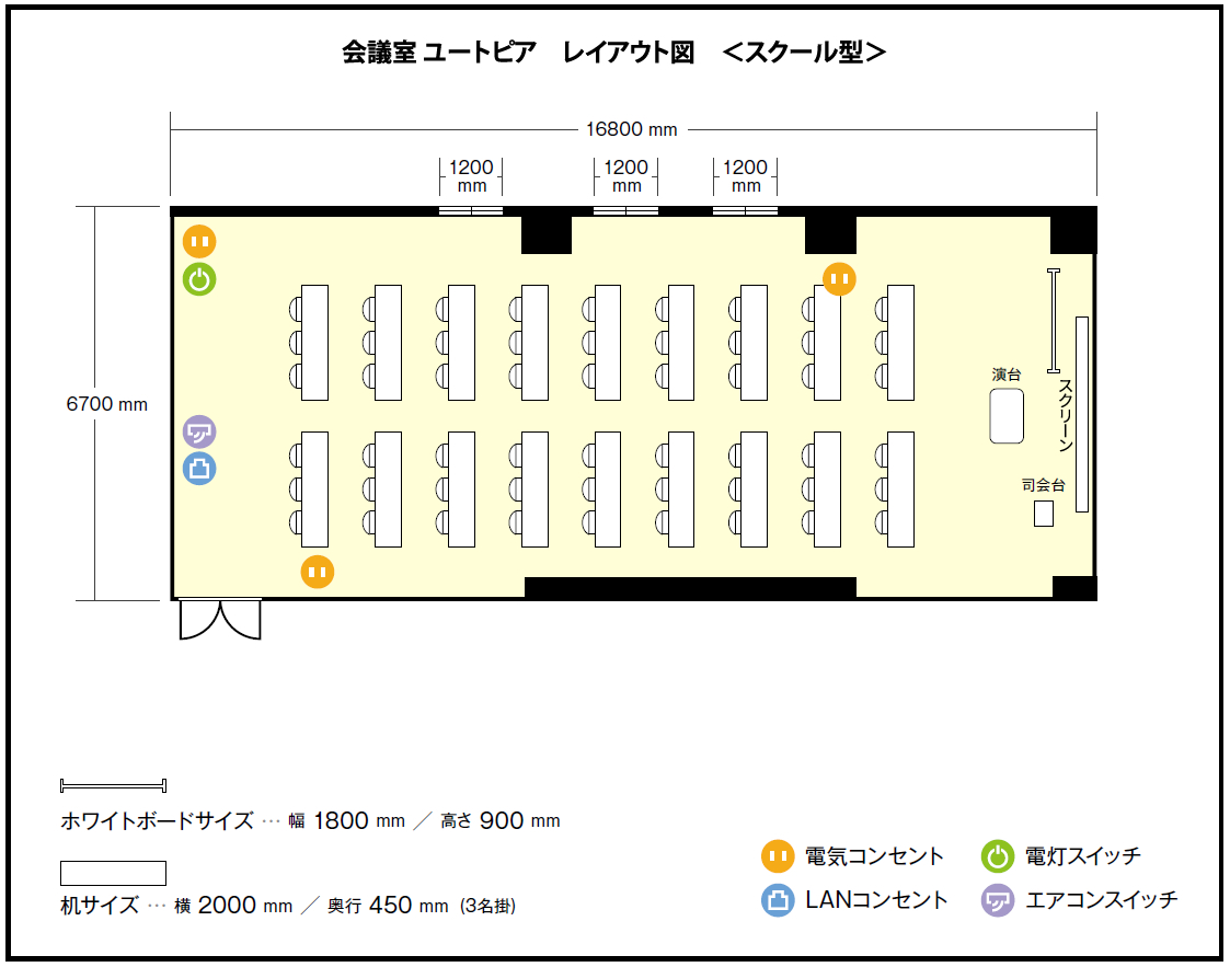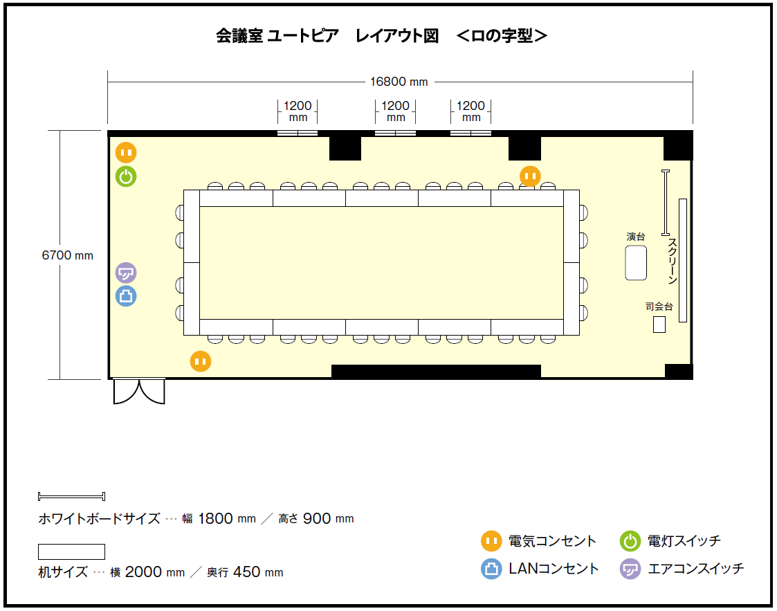 | 備考 | ■ホワイトボード・スクリーン完備 ■ドリンクオプションあり・・・有料 |