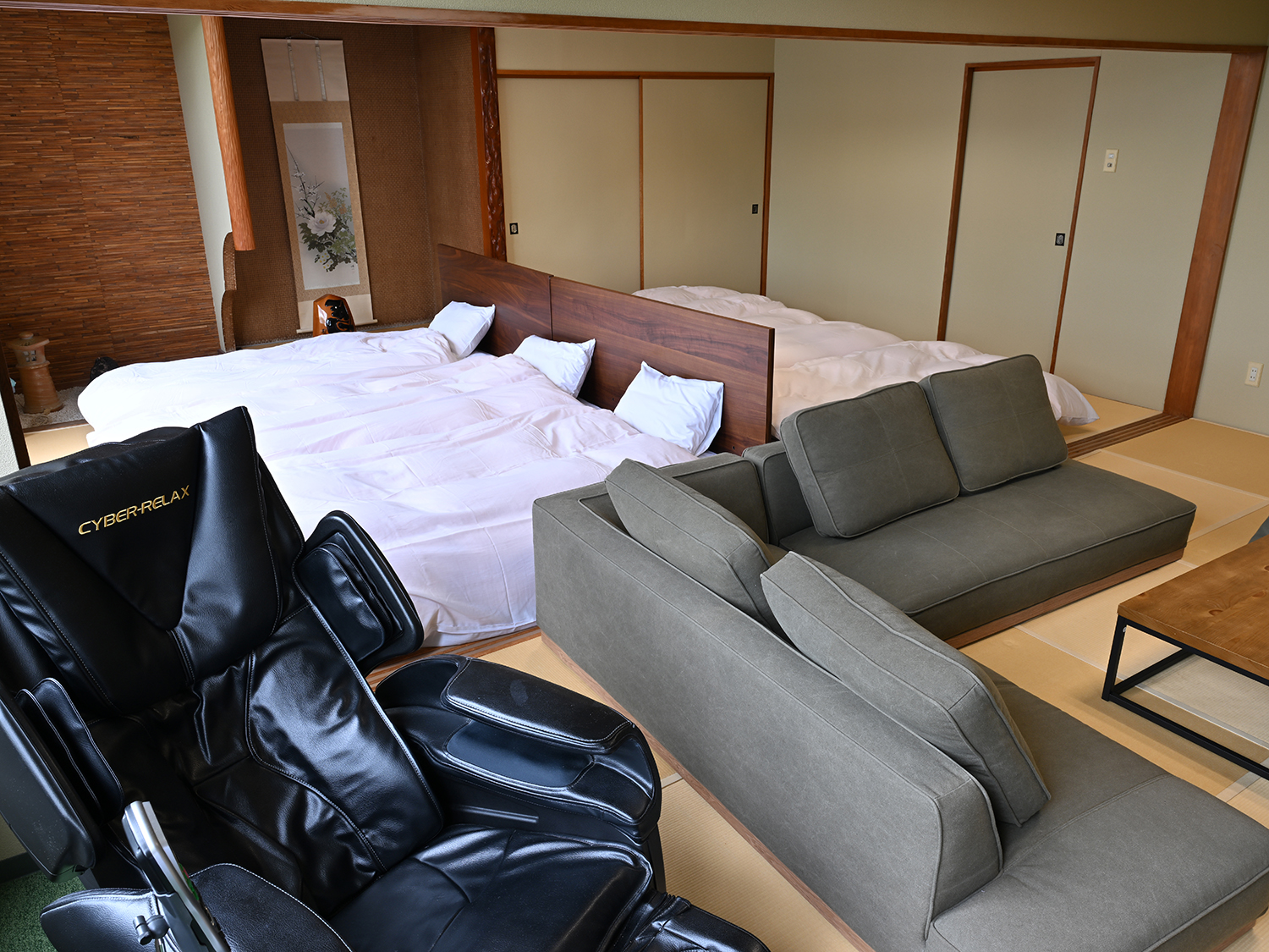 広縁のマッサージチェアが旅の疲れを癒してくれます