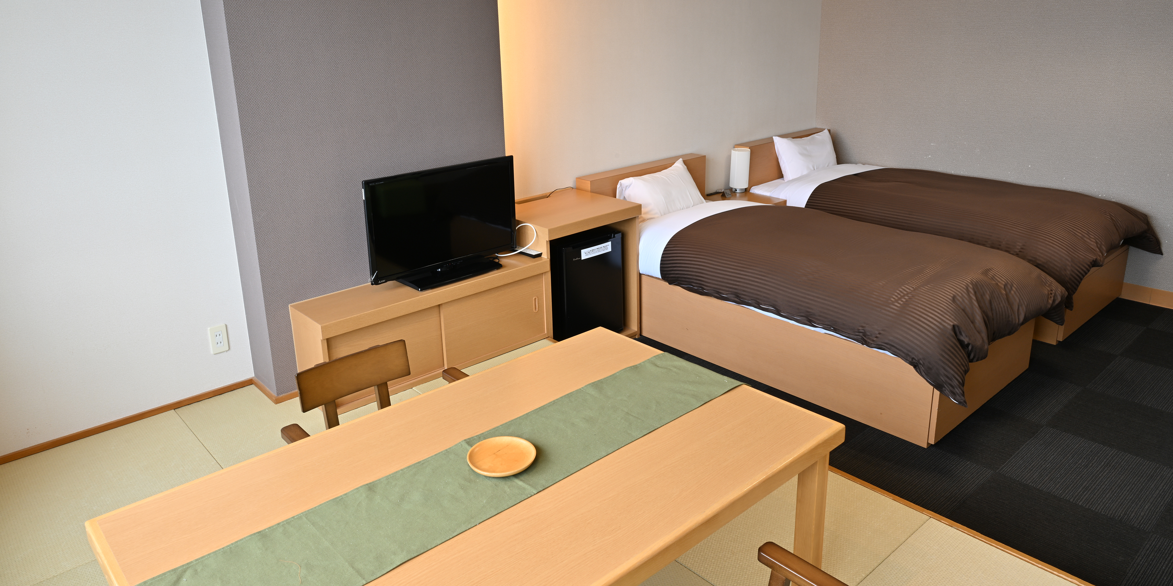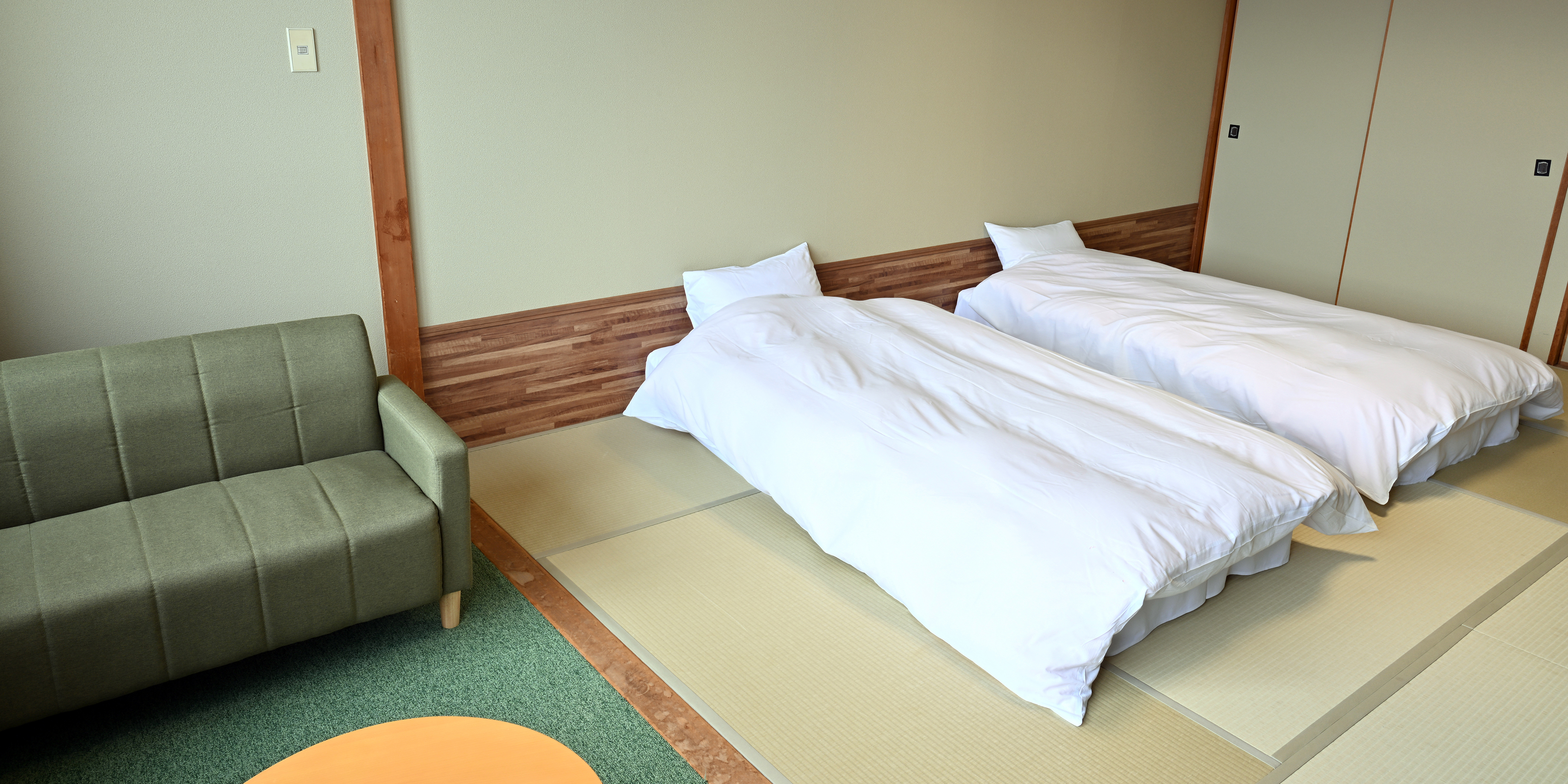二台のベットと小上がりの畳スペースを備え