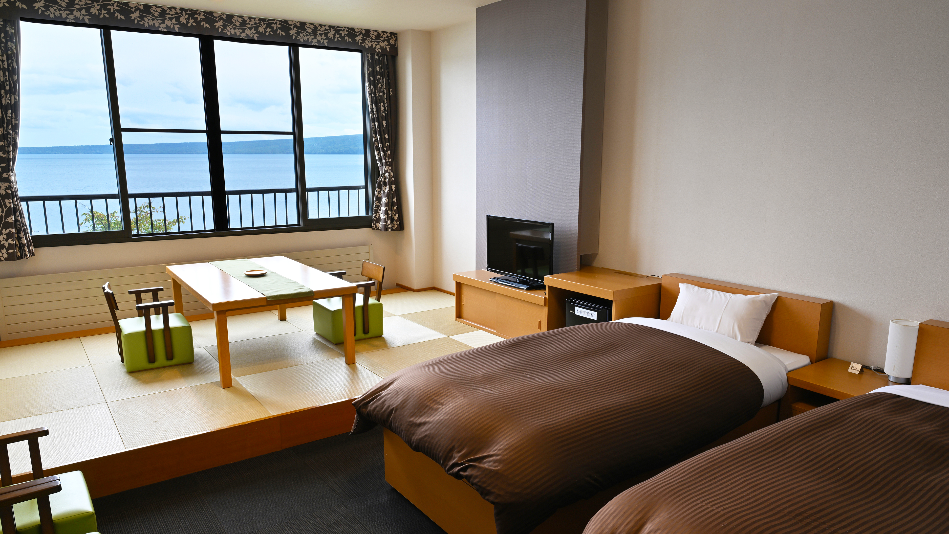 絶景支笏湖をま近に臨む12畳相当の和室二部屋からなる広いお部屋です