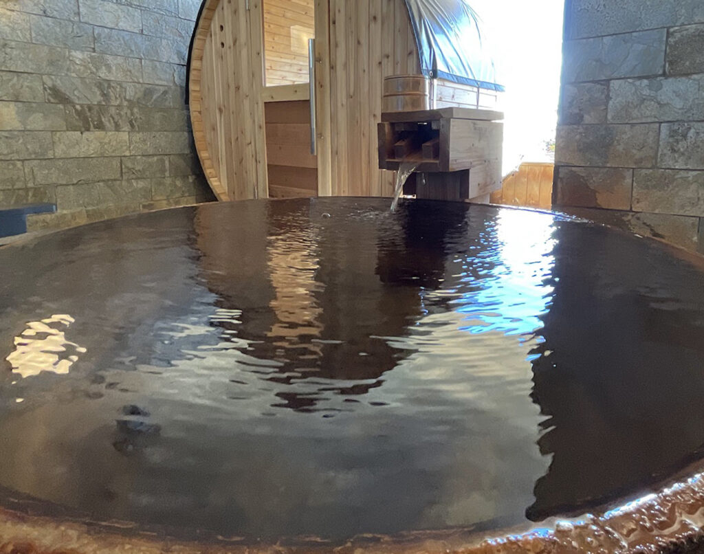 〈支笏湖の水かけ流しの水風呂〉