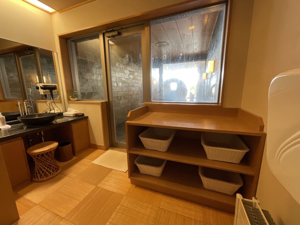 岩風呂の温泉は丸駒源泉かけ流しプライベートが保たれる室内風呂です