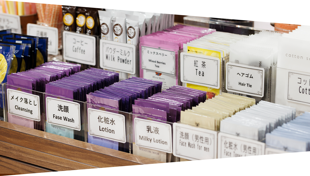 各種紅茶・コーヒーの他、季節ごとに変わる「あったら嬉しい」品々を1階ロビーにてご自由にお選び頂けます。 無料でご用意しておりますので、快適なご滞在にご活用ください。
