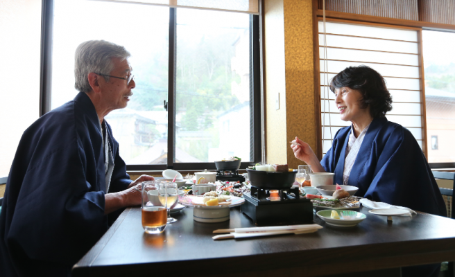 夕食は6時または6時半からのご案内です。朝食は7時半、または8時からです。