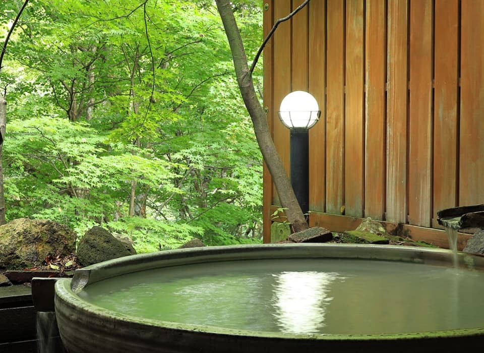 温泉に浸かりながら楽しむという贅沢なひとときが感じられます。