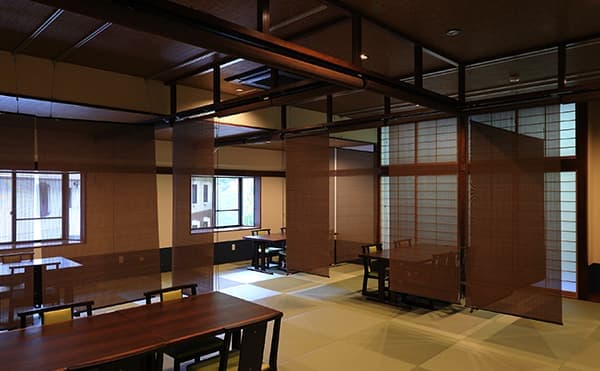 また、この簾は取り外しが可能で、広げることで宴会場としてもご利用いただけます。