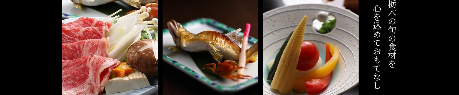 地元の野菜や魚には太くて柔らかい「塩原大根」ピンクの赤身とオレイン酸を多く含んだ「プレミアムヤシオマス」など美味しいものが沢山。