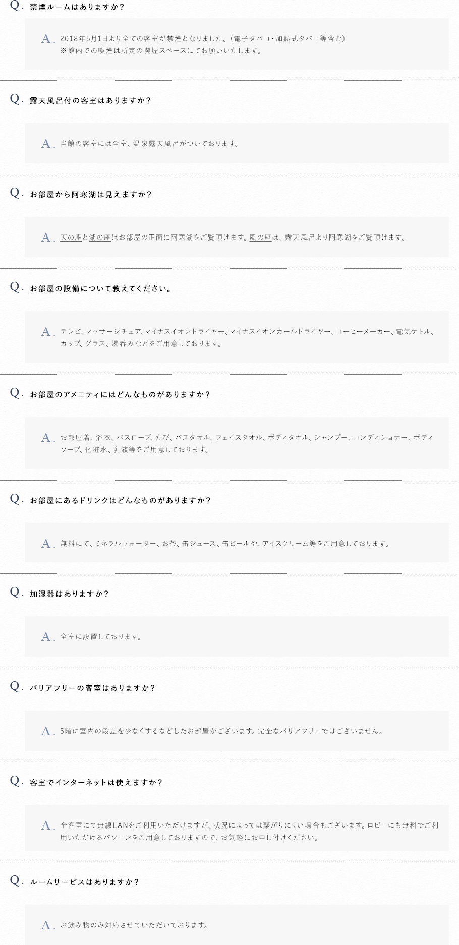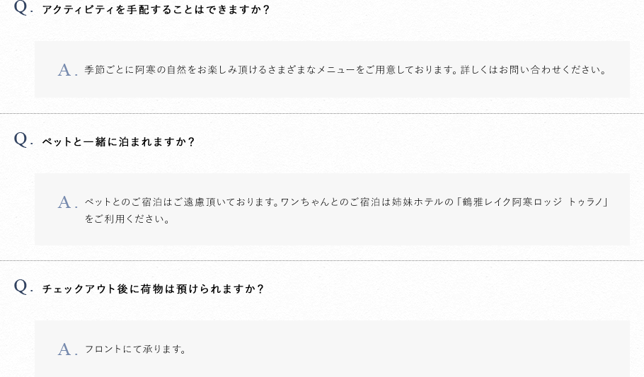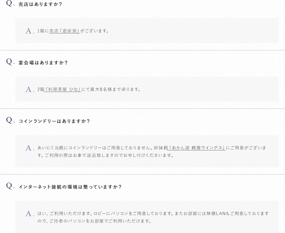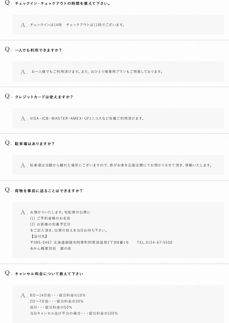 阿寒湖温泉 あかん鶴雅別荘鄙の座 よくあるご質問