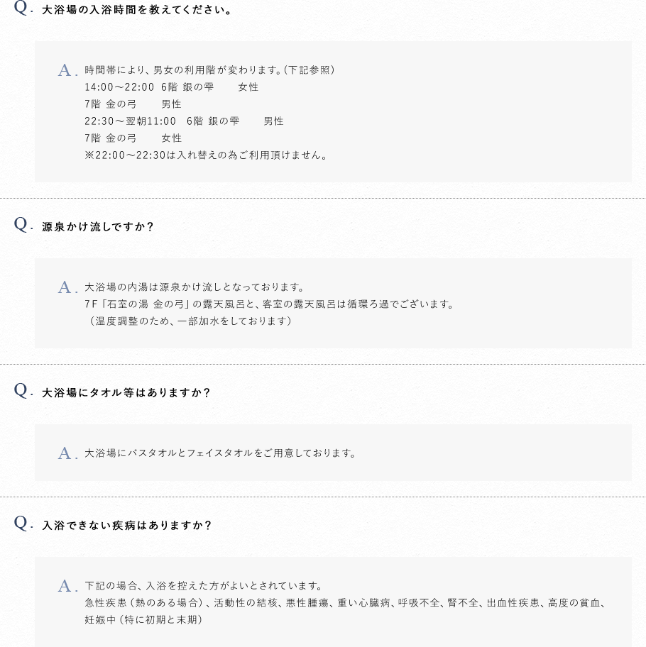 大人の方だけの寛ぎを満喫していただくためにご利用は中学生以上とさせて頂いております。小学生以下のお子様とご利用の場合は、鶴雅グループ姉妹館の